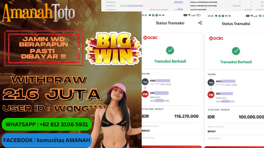Amanahtoto – Adalah Agen judi online terpercaya dan pastinya gacor yang telah membuktikan kemenangan member lewat bukti jeckpot. Dengan bukti jeckpot setiap player dapat mengetahui bahwa situs Amanahtoto memiliki tingkat kualitas terbaik dari kemenangan di game dan dijamin aman terpercaya untuk player yang ingin mencoba merasakan kemenangan dalam permainan judi online di Indonesia.