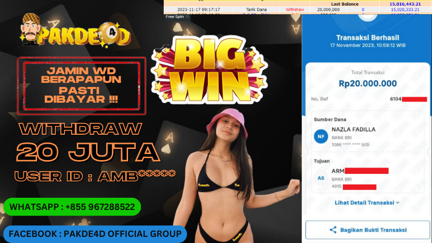Selamat Kepada Member Setia PAKDE4D dengan USER ID : TAN*** di PERMAINAN SLOT sebesar Rp. 30.000.000,- LUNAS langsung mendarat ke rekening tanpa bertele – tele. Terimakasih telah mempercayakan PAKDE4D sebagai Situs Bandar Terpercaya dan Terjamin Aman! Tunggu apalagi? Daftar sekarang juga bersama PAKDE4D dan dapatkan berbagai promo menarik setiap harinya.