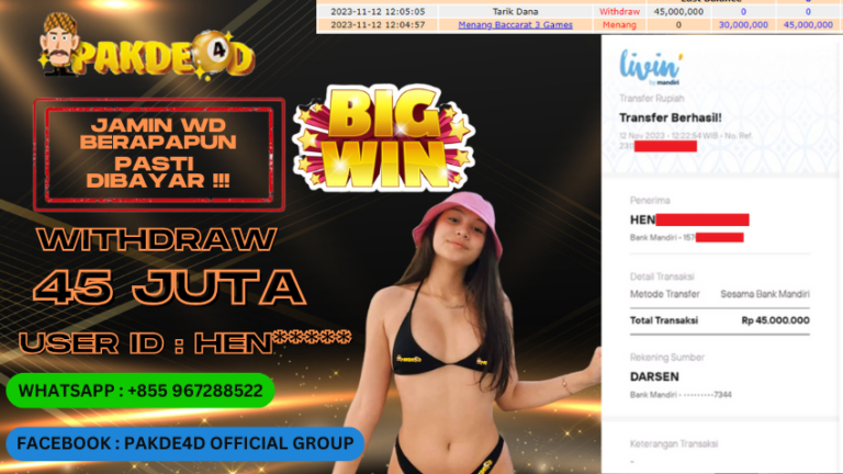 PAKDE4D JACKPOT DI PERMAINAN LIVE CASINO BACCARAT RP. 45.000.000 LUNAS