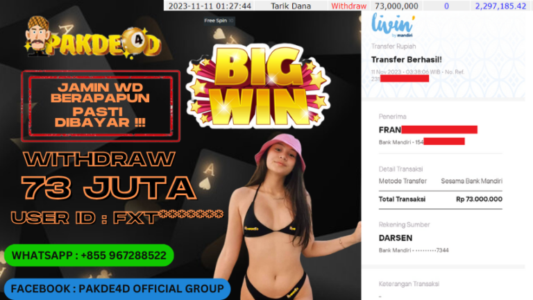 PAKDE4D JACKPOT DI PERMAINAN SLOT RP. 73.000.000 LUNAS